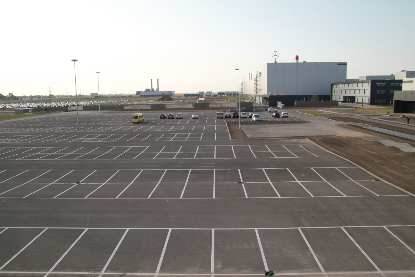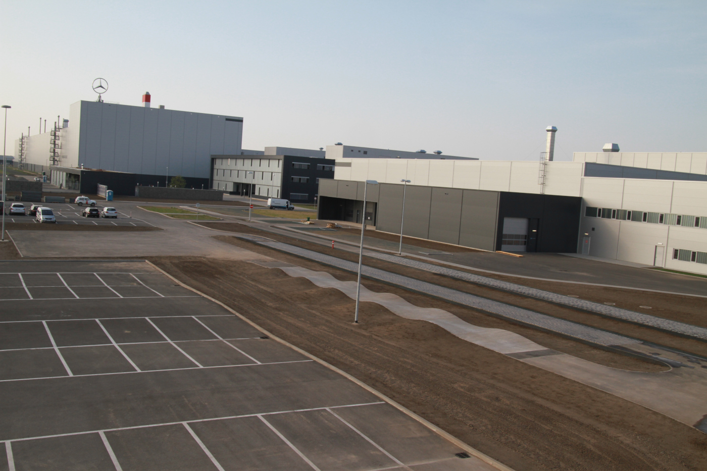 A kecskeméti Mercedes gyár építésénél részt vettünk tereprendezésben, közlekedési létesítmények építésében, régészeti árkok visszatöltésében, I-Park tereprendezésében, közlekedési létesítményeinek építésében, valamint a gyár tesztpályájának kivitelezésében. Utóbbi különleges szaktudást igényelt: a pálya többek közt egy döntött ívvel rendelkező, nagysebességű gyorsasági pályából, egy rázószakaszból és egy hullámpályából áll. Számos részfeladat kapcsolódott a projekthez: nagytömegű földmunkák, talajjavítás, járdák és parkolók kialakítása, valamint a vízelvezetési rendszerek létrehozása, végül pedig a zöldterületek füvesítése.