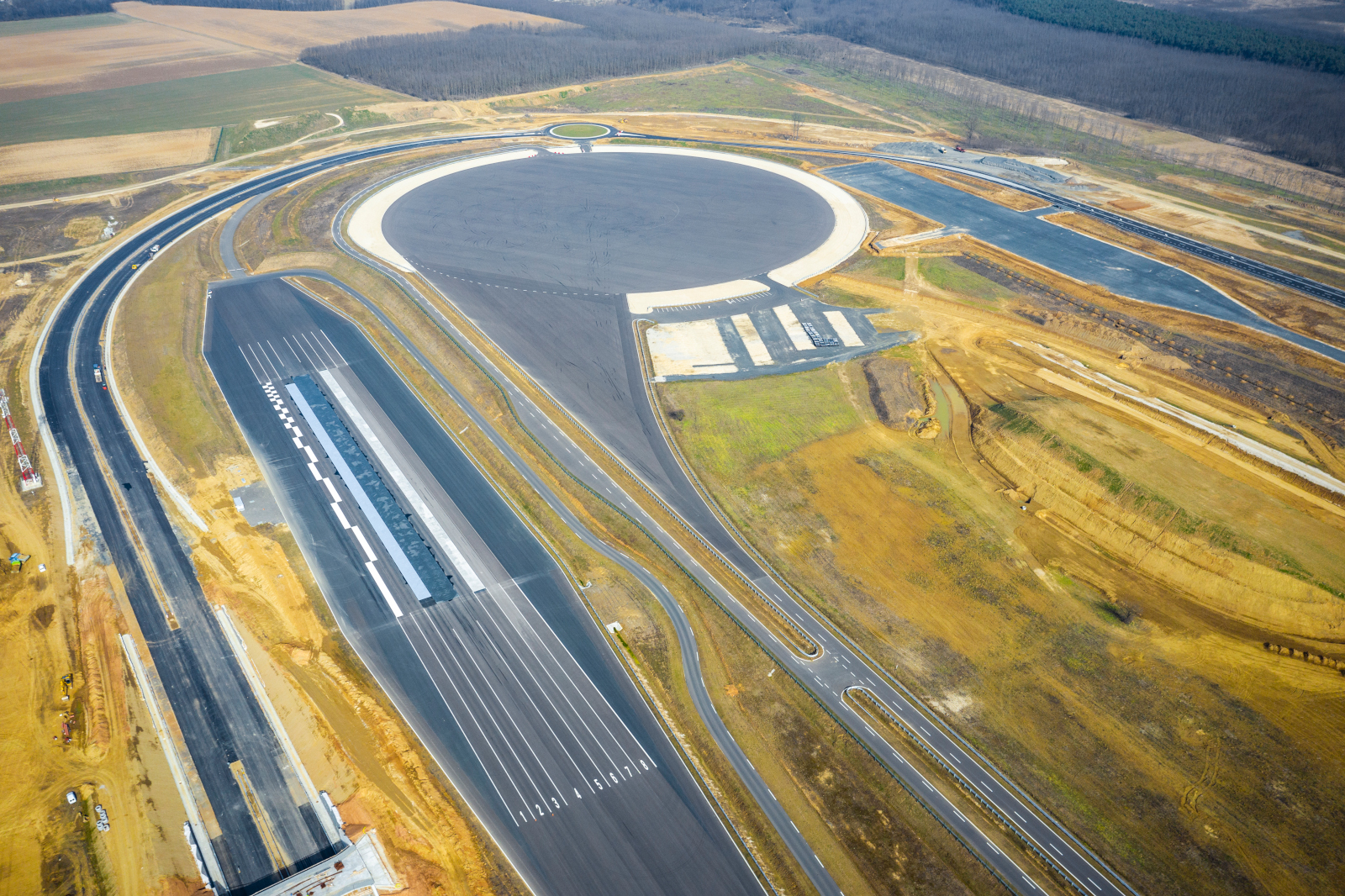 Külön hangsúlyt fektettünk a kis-sebességű kezelhetőségi pálya kialakítására, valamint az ADAS felület és a „dombok modul” kiépítésére. Az egyetemi tesztpálya és a különböző könnyűszerkezetes tesztcélú épületek létrehozása is a mi feladatunk volt. Emellett az üzemanyagtöltő állomások kialakítása és a vízrendezési feladatok, mint például az övárok készítése és a tavak rendezése is fontos szerepet kaptak, a projekt során számos egyéb építményt is építettünk.